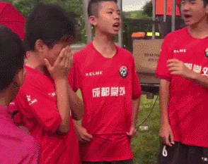 照片中可以看到,小少年们安耐不住自豪又兴奋的心情,边唱边哭。